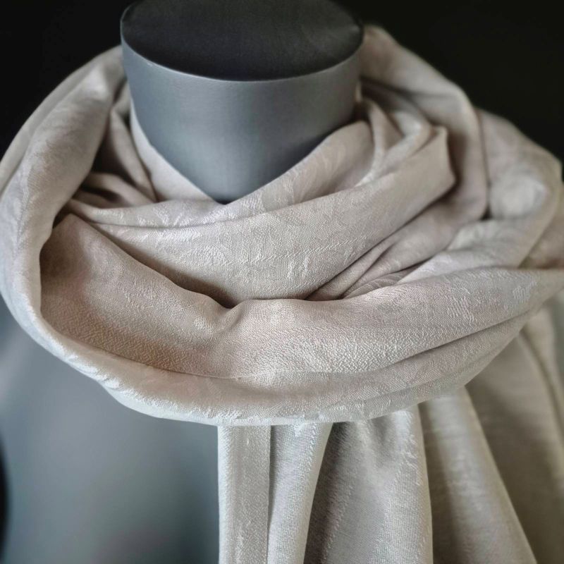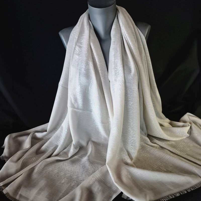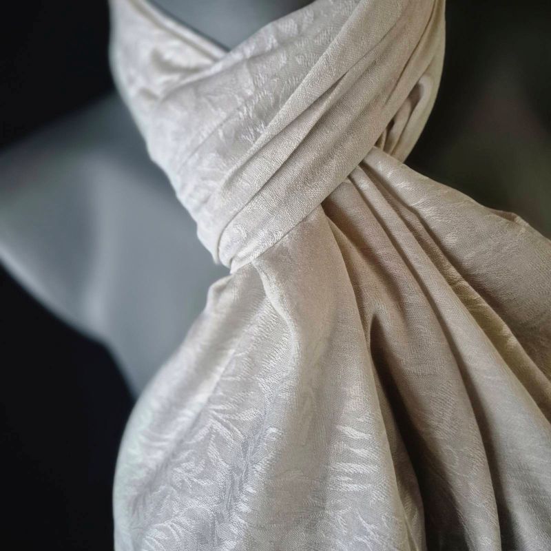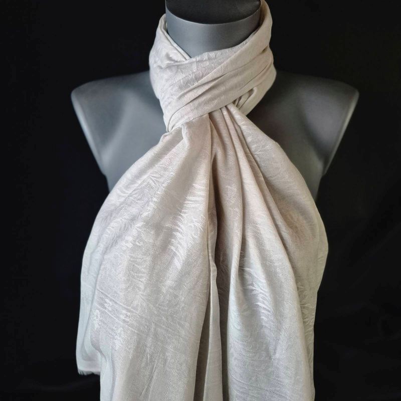 Ένα κομψό, καλλιτεχνικό φουλάρι σε “αφρόγαλο εκρού” τόνους που αναδεικνύει κάθε εμφάνιση. Ιδανικό για ιδιαίτερο στυλ σε όλες τις εποχές.